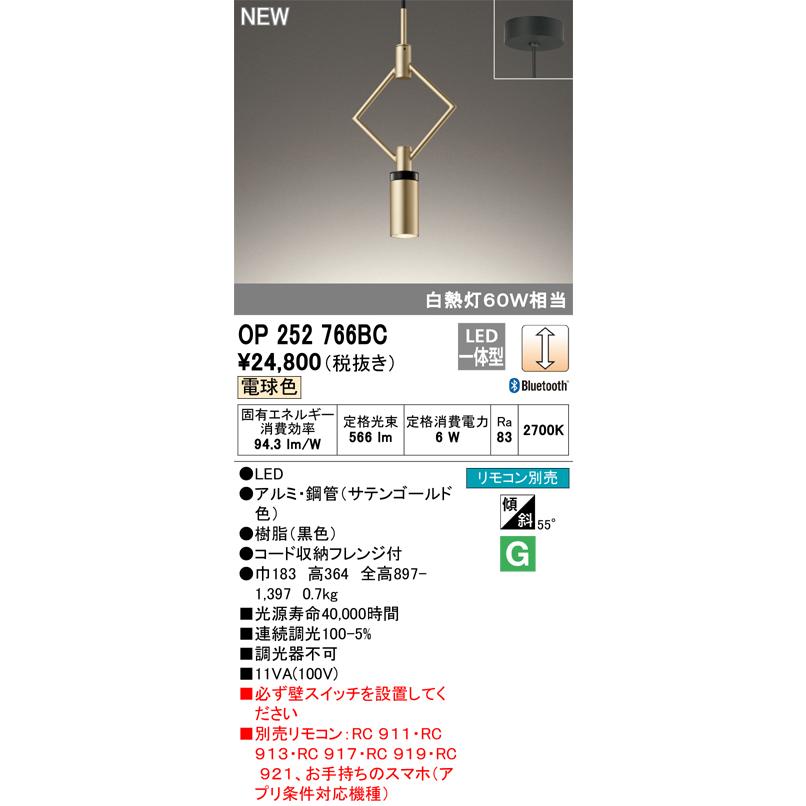 OP252766BC LEDペンダントライト フレンジタイプ 電球色 LC調光 Bluetooth対応 白熱灯60W相当 オーデリック 照明器具 吊下げ 天井照明 装飾照明