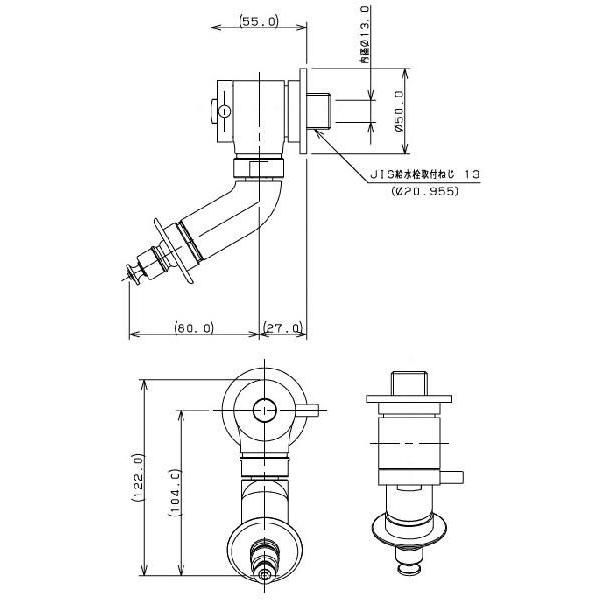 洗濯機用水栓(ストッパー、水撃低減つき) 721-608-13 カクダイ 721-608-13