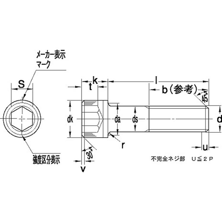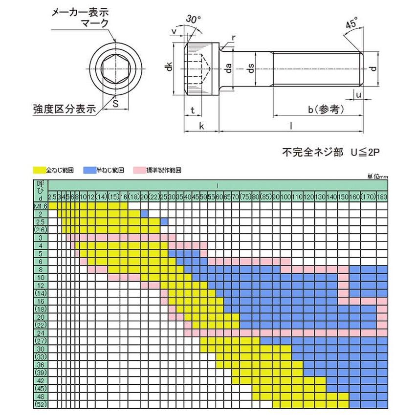 ネジ部確認の場合は問い合わせください 円筒形の頭部に六角形の穴があいているボルトです。締め付けには、六角棒スパナ(六角レンチ)を使います。ボルトとして扱われていますが、多くの場合、ナットと組まないで使われます。キャップスクリューやソケットスクリューとも呼ばれます。六角ボルトを締め付けるつめのスパナやレンチは、作業するためのスペースを周りに必要としますが、六角棒スパナはスペースを必要としません。そのため、六角穴付きボルトを使うことで、狭い場所での作業や機械の小型化が可能です。その見た目から、デザイン的な使われ方も増えています。"}