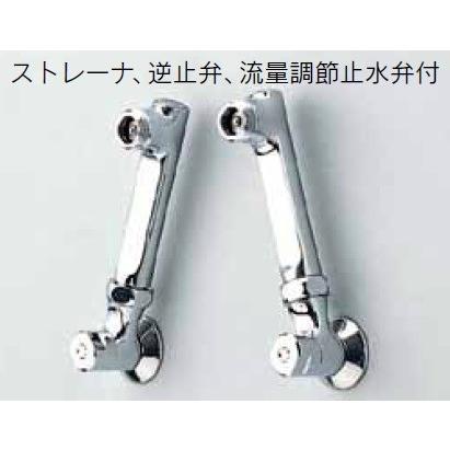 KF120、KF151、KM120、KM150、KM55G-E等との組合せにご使用ください。13(1/2)壁付混合栓、シャワーの本体位置を高く上げる場合また取付脚が取り付けられない場合、また湯水の配管の間隔が広すぎる場合等にご利用ください。
