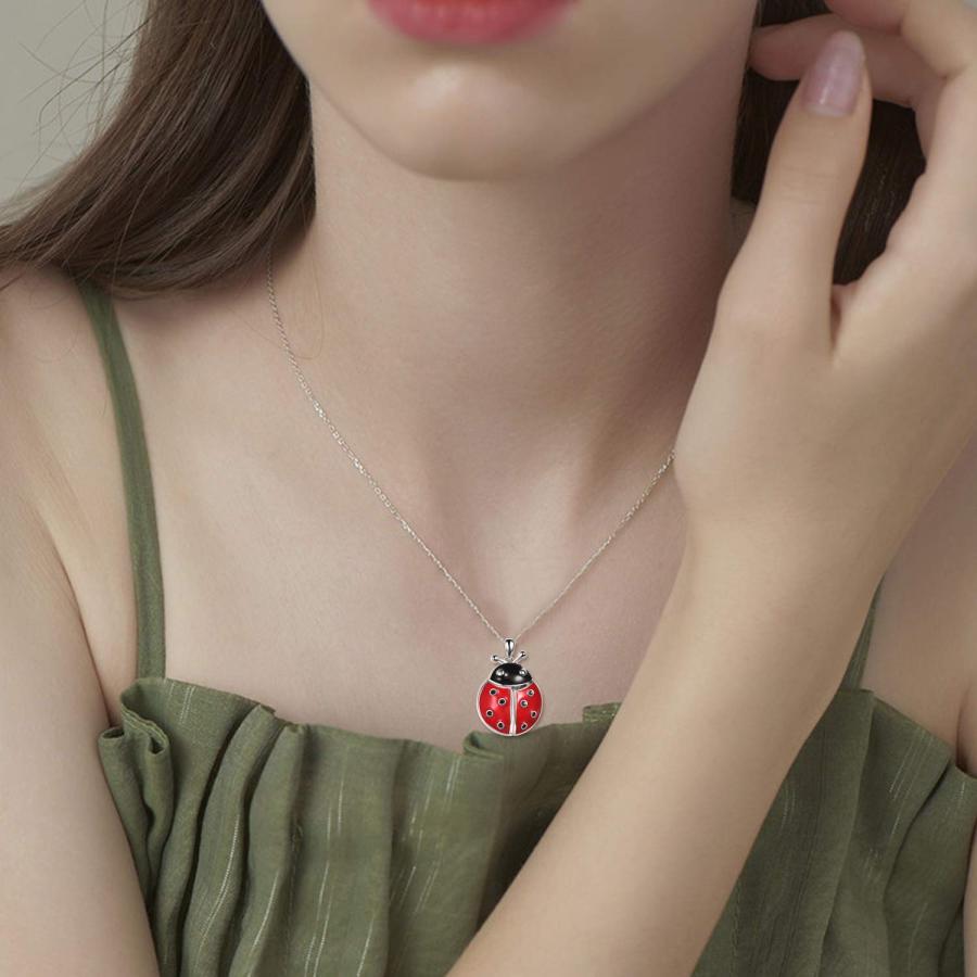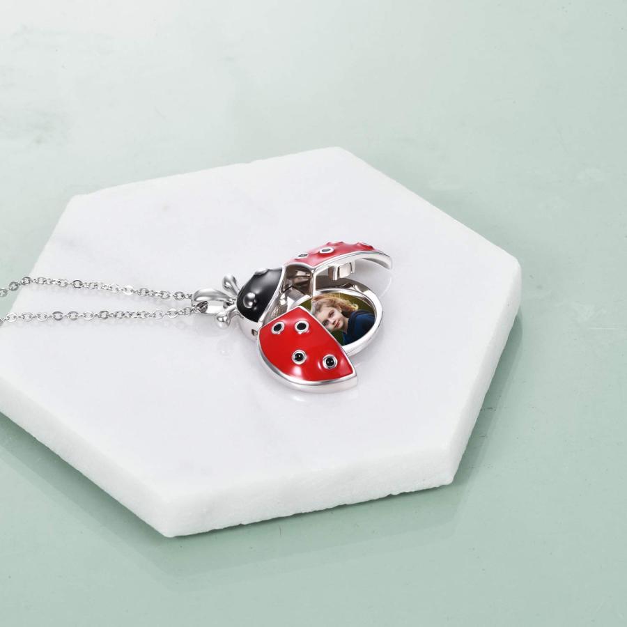 POPLYKE Ladybug Locket Necklace that Holds Pictures Sterling Silver Ladybug Necklace for Women Ladybug Jewelry for Mothe