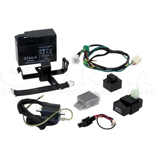 【セット内容】 専用ハーネス、レギュレーター、ウインカーリレー、CDI、イグニッションコイル、バッテリー(モンキー用ステー付)、取説付き