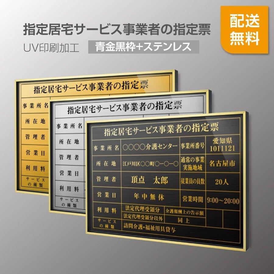 指定居宅サービス事業者の指定票 選べる額の色 ステンレスカラー 書体種類 520×370mm uv印刷 撥水加工 錆びない 法定サイズ 短納期(l0736-sbs)