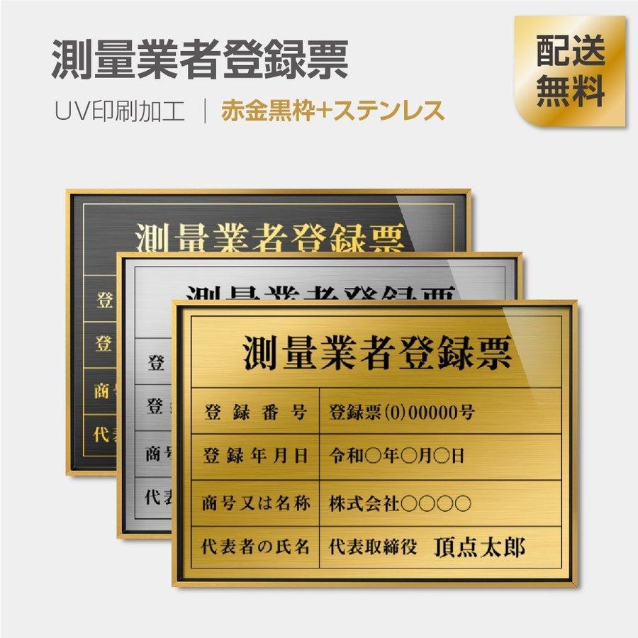 測量業者登録票 選べる額の色 ステンレスカラー 書体種類 520×370mm UV印刷 撥水加工 錆びない 法定サイズ 短納期(l0736-skr)