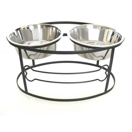 ステンレスのフードボウル付き!ボーンモチーフのスタンド フードボウルはワンちゃんの体高にあわせて、適度な高さに設置しないと前足や首、腰に負担がかかってしまいます。その「ちょうど良い高さ」にボウルを設置できるのがフードボウルスタンド。 「ボーン・ダブル・ダイナー」は安定したデザインでフードボウルを適度な高さにキープします。 専用のボウルはステンレス製なので錆びにくく、アレルギー体質のワンちゃんにも比較的安心してお使いいただけます。ボウル自体もとても軽いので毎日のお手入れも楽々。スタンド正面に入ったボーンモチーフがインテリアのアクセントに。ダブル・ダイナーはボウル2個付きなので、片方はごはん用、もう片方はお水用としてお使いいただけます。 毎日使う食器だからこそ、身体に負担がかからず永く愛用できるものが良いですね♪ ☆選べる高さ3種類☆ステンレスのボウル2個付き☆フードボウルとしてもウォーターボウルとしてもお使いいただけます"}