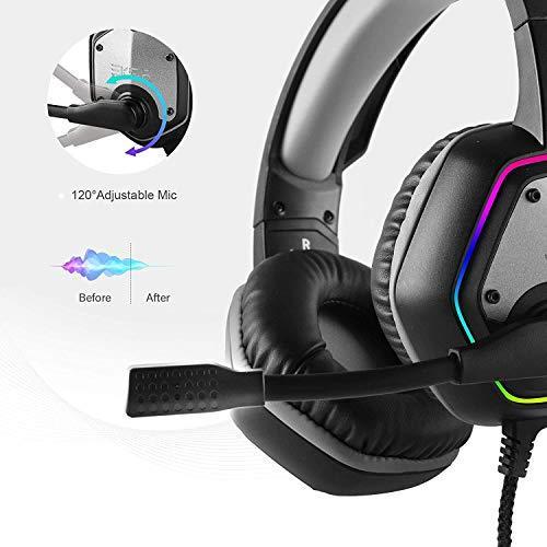 EKSA エクサ ゲーム用ヘッドセット 7.1サラウンドサウンドステレオ PS4 USBヘッドホン ノイズキャンセリングマイク/RGBラ 並行輸入
