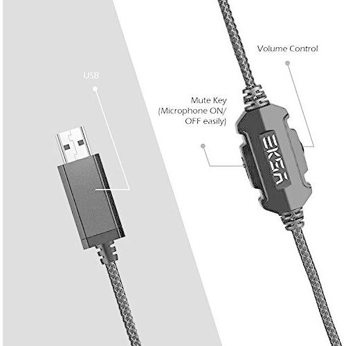 ・グレー E1000・対応機種: パソコンゲームをする方向けの専門的なゲーム用ヘッドセット。パソコンWindows 7、Windows 8、Windows10、プレイステーション4コンソール、ノートパソコン、Mac、その他のUSBオーディオポートを備えた機器に対応。・ 7.1サラウンドサウンド: EKSAエクサゲーム用ヘッドセットには、7.1サラウンドサウンドのUSBオーディオサウンドチップ内臓。 50mmの磁気ネオジムドライバーと組み合わせて、ゲームにステレオサラウンドサウンドで臨場感溢れるゲームに。 ドライバー不要で、とても簡単に使いやすい製品。・ ノイズキャンセリングマイク・ワンキーミュート機能: 全方向ノイズリダクション技術を搭載した高感度マイクは、注意がそがれる環境の雑音を低減し、音声を鮮明に拾います。使いやすい音量調整、ワンキーのマイクミュートスイッチで、ゲームの操作をしやすくなります。 ノイズキャンセリングマイクで、ゲームやオンラインチャットで大音量で高音質の音声通話を確保。・ 人間工学に基づくデザイン: 一日中快適なデ