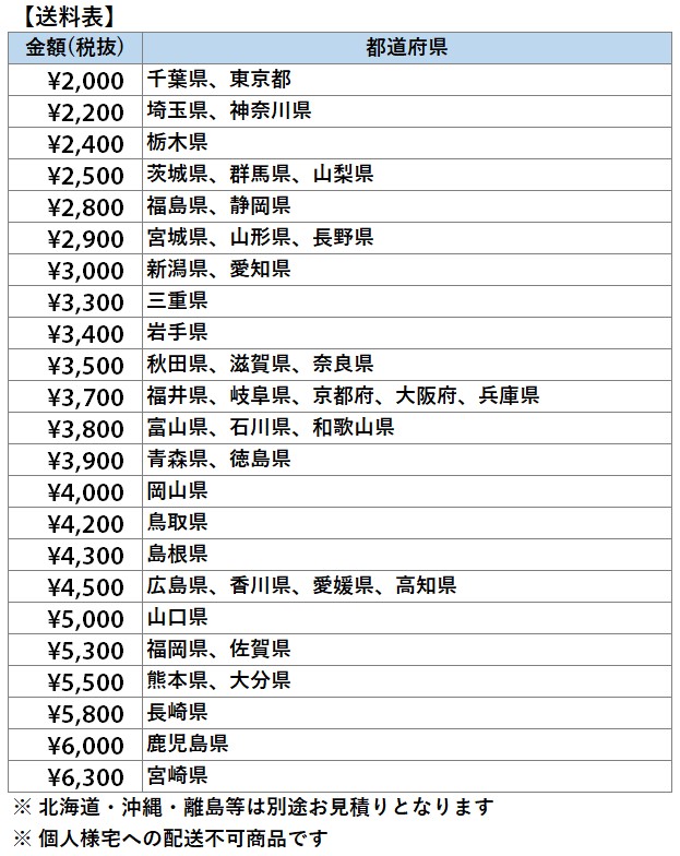 詳しくは下部送料表をご確認下さい