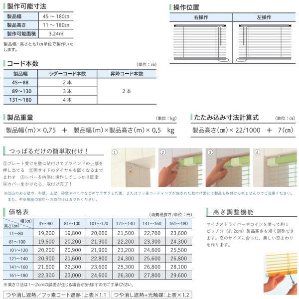 ネジを使わず工具なしで簡単取付。取り外したあともネジの跡が残りません。和室や賃貸住宅におすすめ。スラット幅:25mm製作可能寸法:幅45〜180cm、高さ11〜180cm最大製作可能面積:3.24平米ご注意 :特殊環境(火気のある場所等)ではご使用にならないようお願い致します。 製品写真の色調は、実物と多少異なる場合がこざいます。ご注意事項