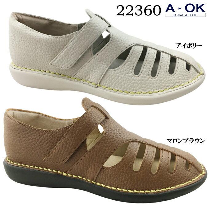 安心の日本製軽量で柔らかな革を使用し、ソールは低反発仕様で屈曲性・弾力性があり疲れにくく履きやすいフラットシューズです。面ファスナー仕様で履き口が大きく開き、脱ぎ履きしやすく、甲の部分にスリットが多く入り涼し気なシューズです。□カラー:マロンブラウン・アイボリー□サイズ:22.0cm 22.5cm 23.0cm 23.5cm 24.0cm 24.5cm ヒールの高さ:約3.5cm 重量:約220g(23.5cm片足で) ワイズ(横幅):4E(EEEE)□23.5cm(2E)の女性スタッフの感想 私は23.5cmが丁度よかったです。□素材 アッパー:本革 ソール:合成底送料無料商品ですが、送付先が沖縄県の場合800円、北海道の場合400円の送料が発生いたします。また、離島は沖縄県の離島は800円、それ以外の地域の離島は400円の送料が発生致しますのでご了承ください。カジュアルシューズ レディース A-OK CASUAL&SPORTS 22360 エーオーケー フラットシューズ ラウンドトゥ フラットソール 疲れにくい 低反発 クッション性 屈曲性 軽量設計 幅広 4E EEEE 本革 レザー ソフト革 幅広 made in japan 女性 婦人"} 商品説明 商品の特徴 安心の日本製