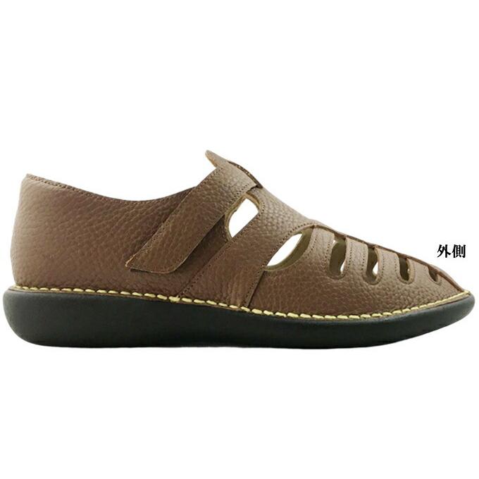 面ファスナー仕様で履き口が大きく開き、脱ぎ履きしやすく、甲の部分にスリットが多く入り涼し気なシューズです。 カラー マロンブラウン・アイボリー サイズ 22.0cm 22.5cm 23.0cm 23.5cm 24.0cm 24.5cm