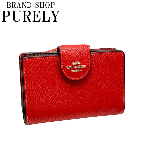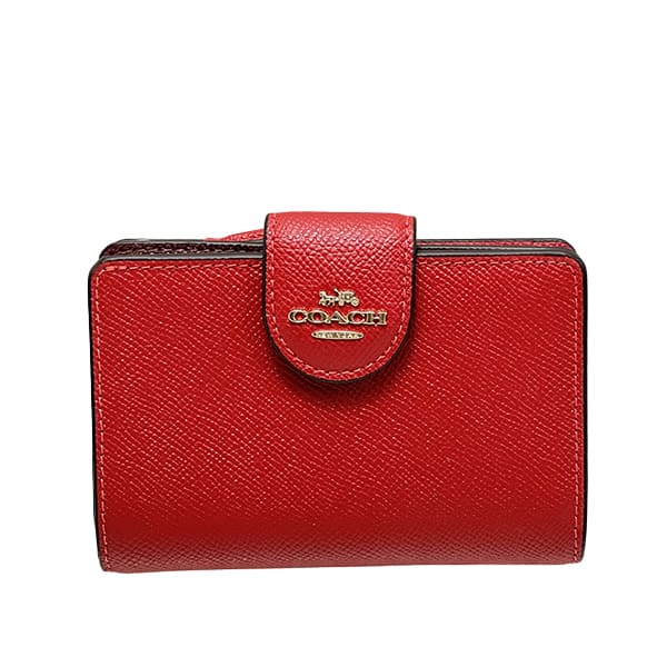 コーチ 財布 レディース COACH 折り財布 クロスグレイン レザー ミディアム コーナー ジップ ウォレット 6390 IMRZP エレクトリックレッド