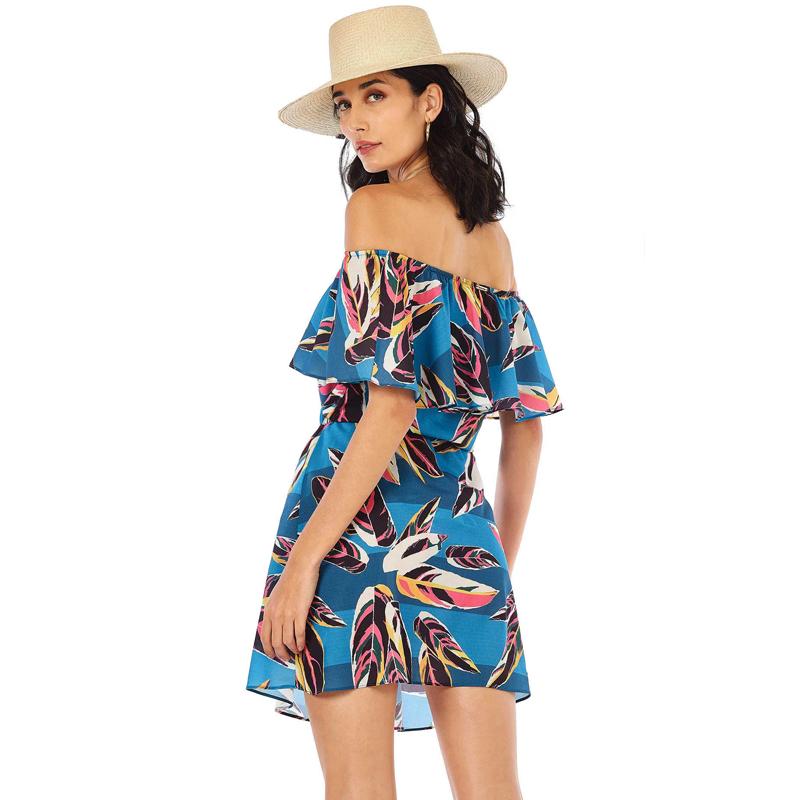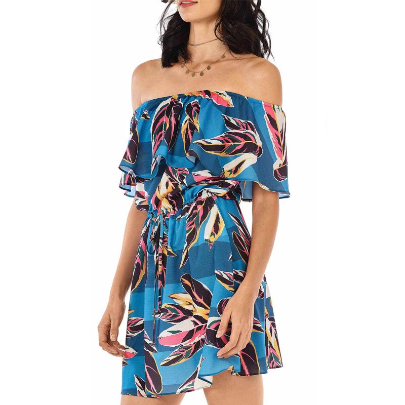 【Morena Rosa】リーフ柄オフショルダーリゾートドレス
