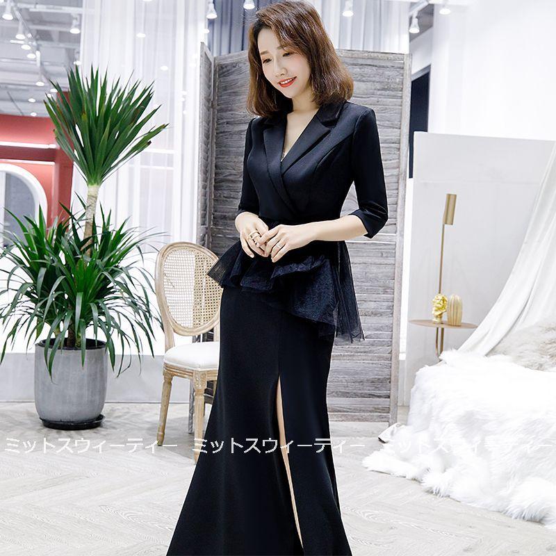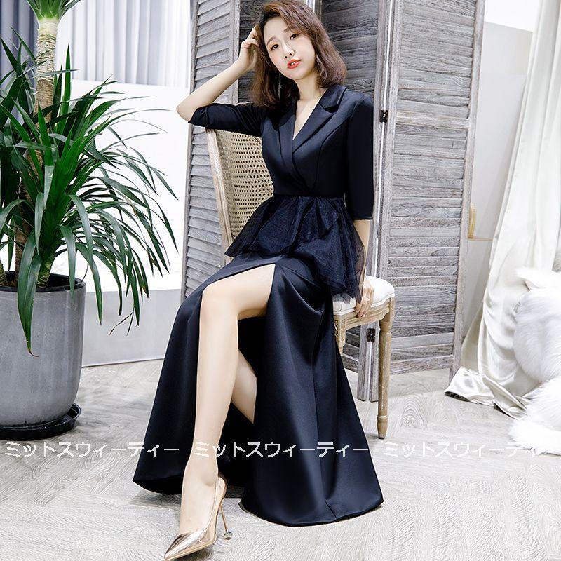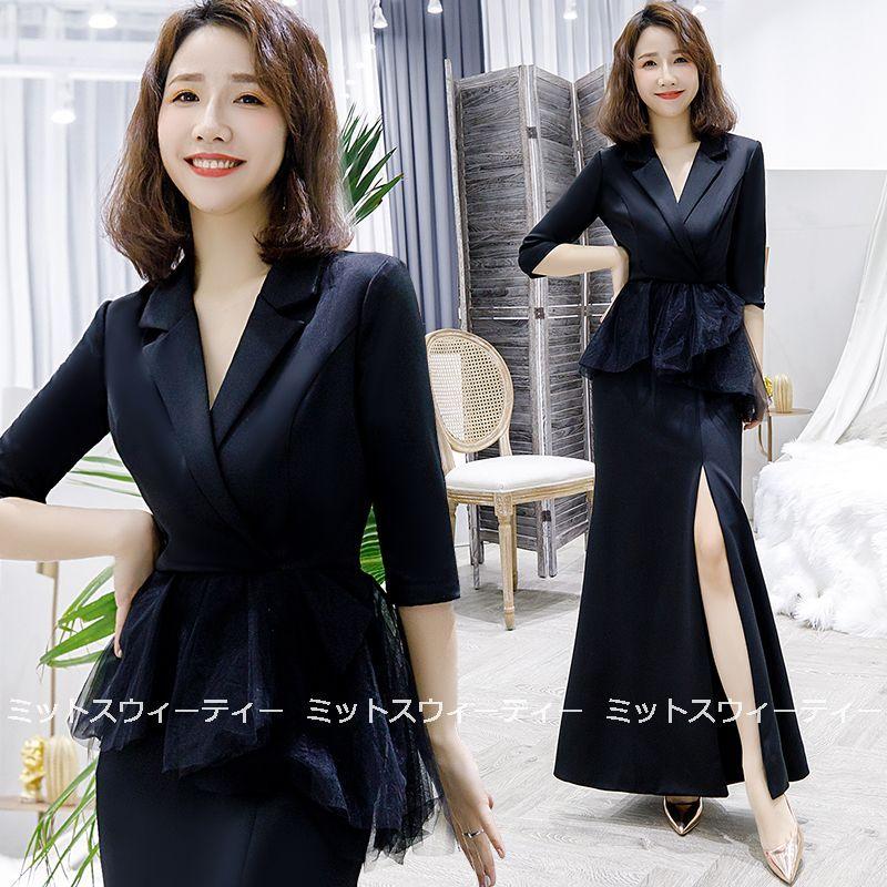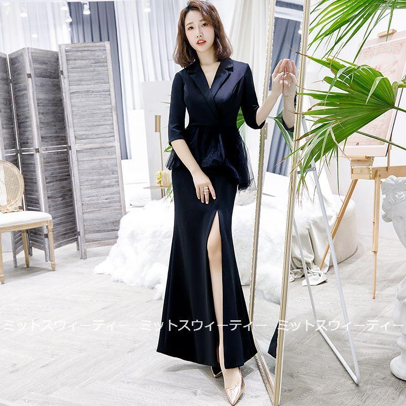 ロングドレス 5色 カクテルドレス スーツドレス 演奏会 カラードレス イブニングドレス 二次会 パーティードレス 発表会 フォーマルドレス お呼ばれ Vネック