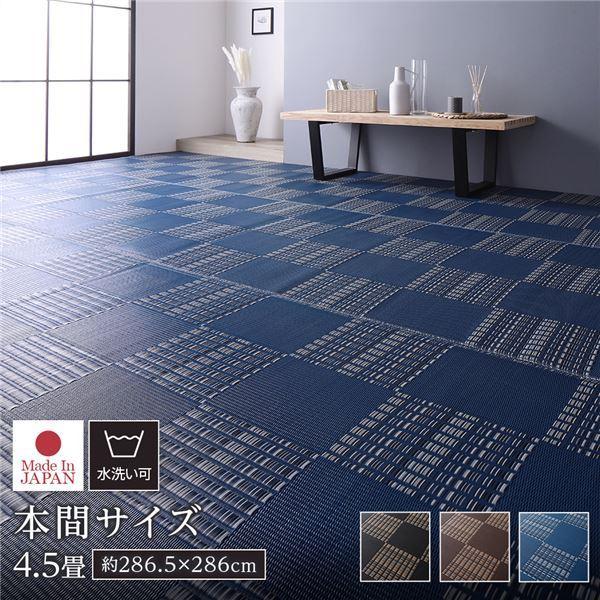 ラグ マット い草 調 本間4.5畳 約286.5×286cm ネイビー 洗える 日本製 軽量 除菌スプレー対応 市松模様 ポリプロピレン 敷物〔〕