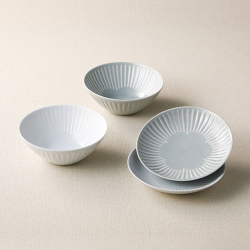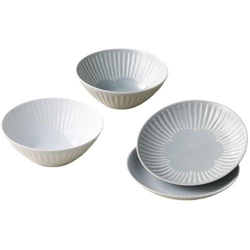| メーカー品番 : 19869 セット内容 : プレート(径15.5×3cm)・ボウル(径14.5×5.5cm)×各2 材質 : 磁器 本体重量 : 約900g 生産国 : 日本 ※電子レンジOK |