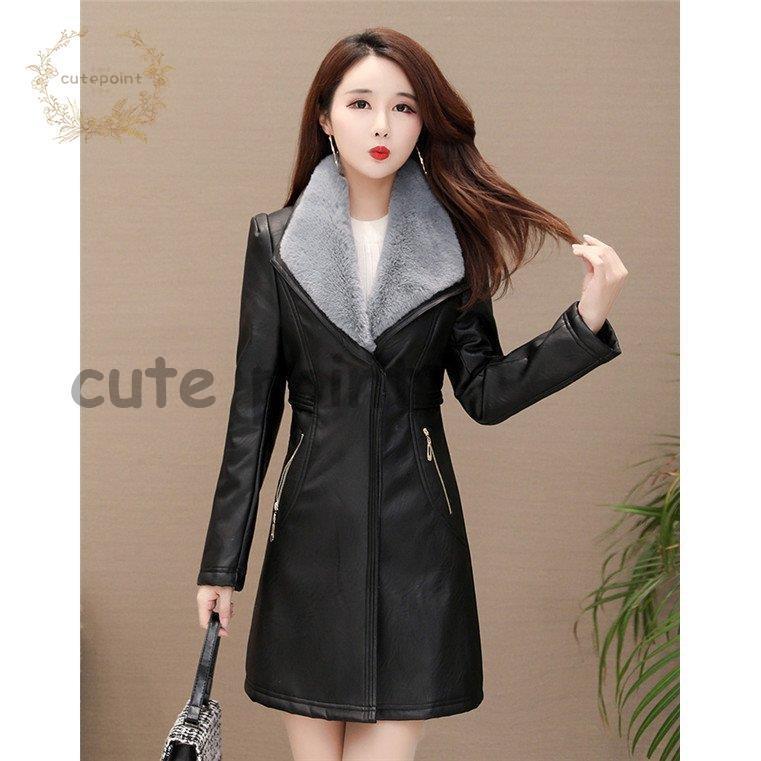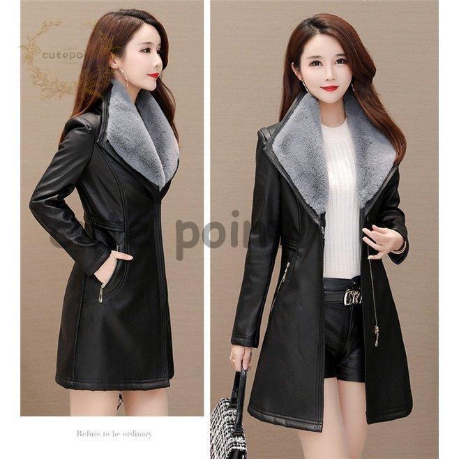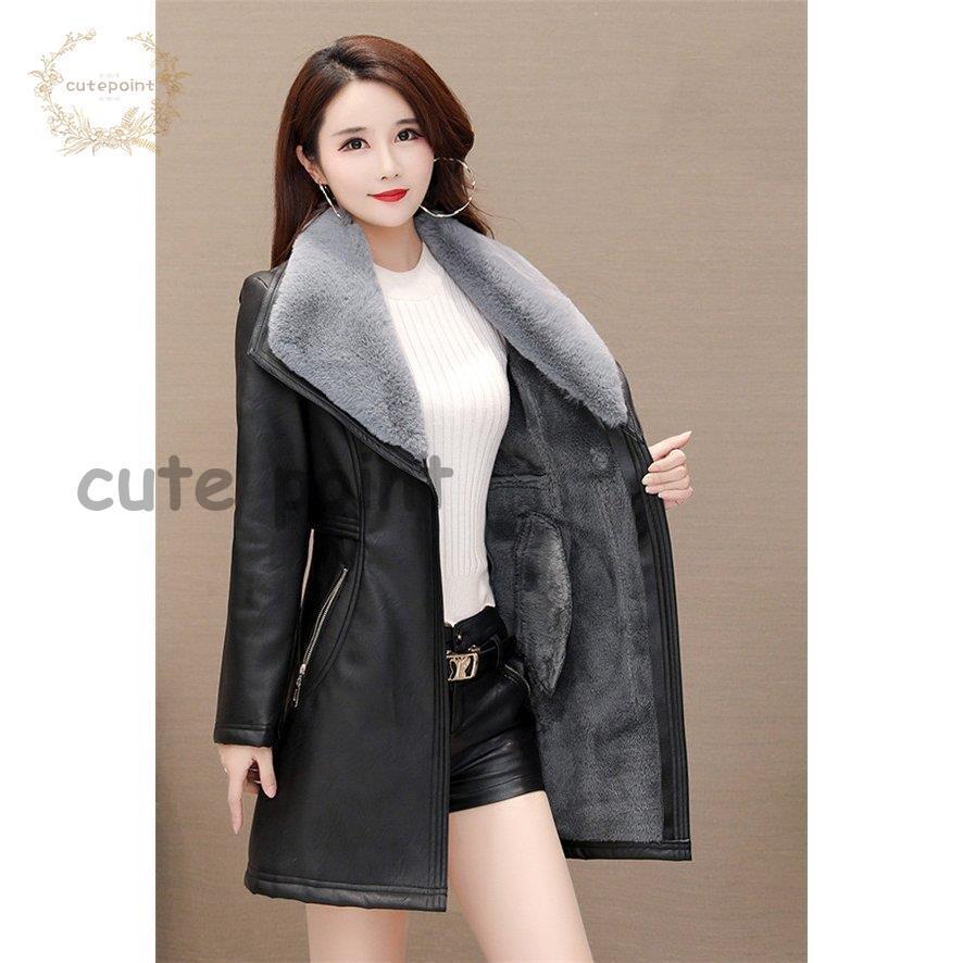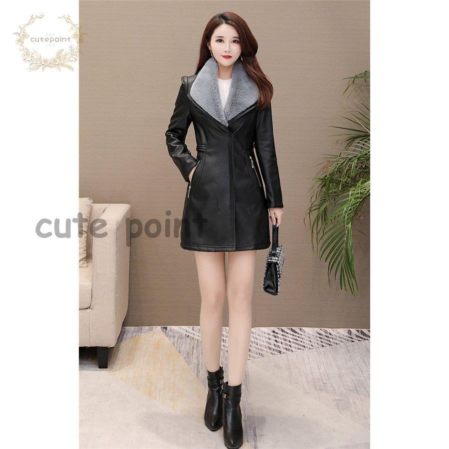 レザージャケット レディース ライダースジャケット ロング丈 革ジャン 皮コート カジュアル 暖かい 30代 冬物 エレガント 裏起毛 ボア 防寒