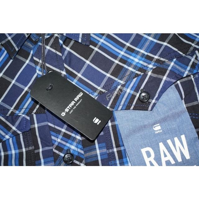 ジースターロウ G-STAR RAW 半袖シャツ チェック 青 黒 83609E ストレッチ メンズ 夏物 ジースターロゥ ブルー ブラック