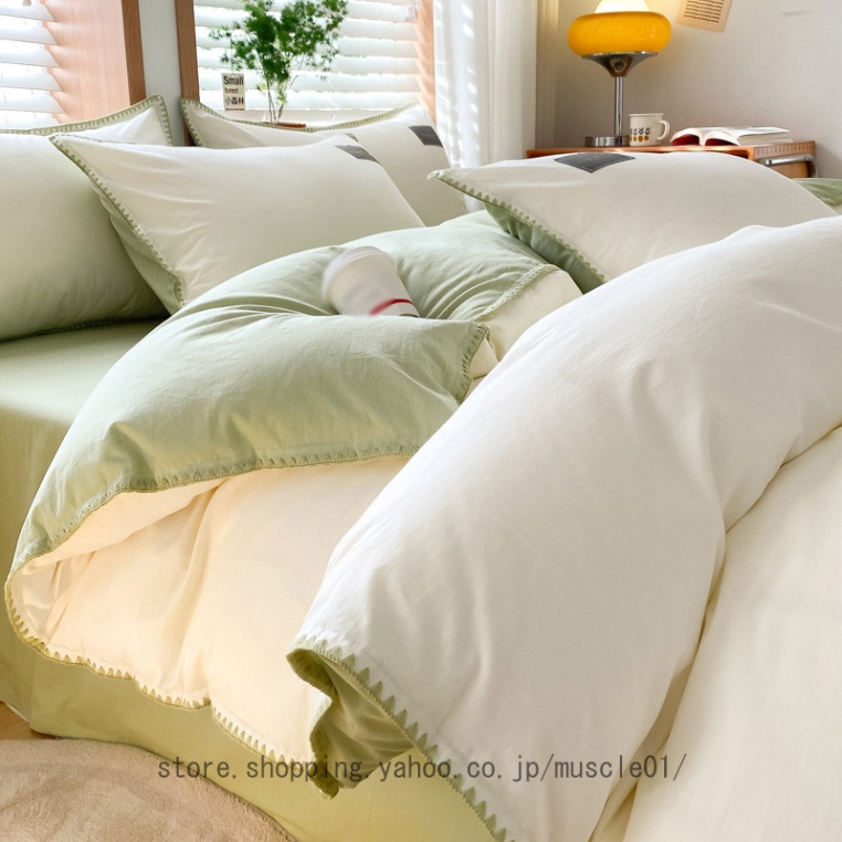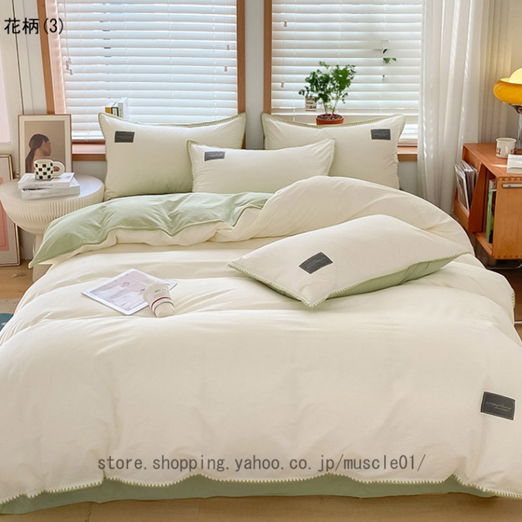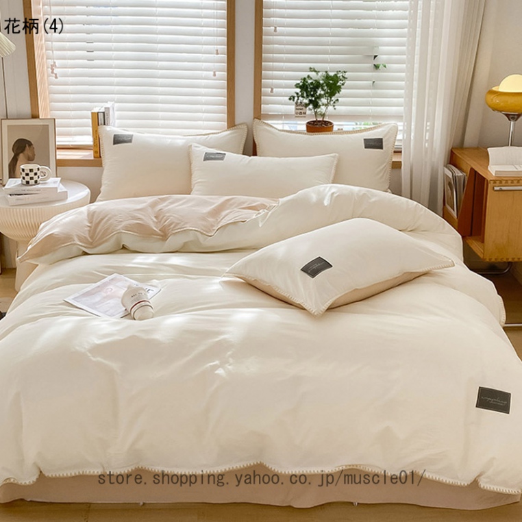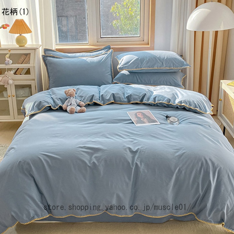 <セット内容と仕様>200*230a*4=4点セット:掛け布団カバー・200*230cm フラットシーツ・230*250cm 枕カバー・48*74cm(2枚)220*240a*4=4点セット:掛け布団カバー・220*240cm フラットシーツ・245*250cm 枕カバー・48*74cm(2枚)200*230b*4=4点セット:掛け布団カバー・200*230cm ボックスシーツ・150*200cm 枕カバー・48*74cm(2枚)200*230b1*4=4点セット:掛け布団カバー・200*230cm ボックスシーツ・180*200cm 枕カバー・48*74cm(2枚)<おしゃれな北欧風デザイン>いつもの寝具にセットするだけで、かわいくお部-*-屋を演出。寝室が雰囲気を変わりたい方もぜひお試しください。<素材>磨き繊維素材を採用。 柔らかな加工を施し、軽くてなめらかな肌ざわりを愉しみながら心地よくお休みいただけます。<防菌防臭・防ダニ>すぐれた抗菌防臭効果があり、カビなどの微生物による繊維製品の劣化を抑制。繰り返しの洗濯にも、効果は殆ど変わりません。"}