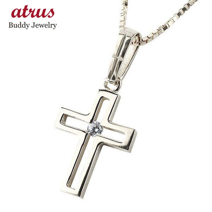 メンズ クロス ネックレス シルバー ペンダント ダイヤモンド 一粒 pt900 チェーン 十字架 人気 透かし コントラッド 東京