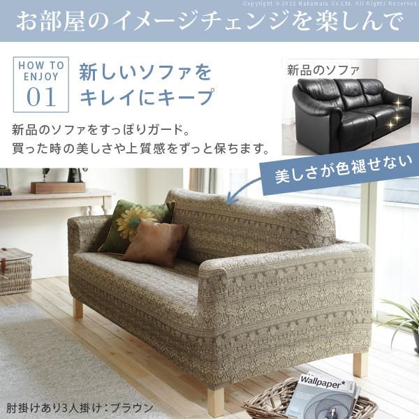 ソファーカバー 3人掛 スペイン製 ソファカバー-カーシャ 肘掛けあり3人掛けワイド ソファー 肘付き 伸縮 模様 おしゃれ ジャガード織り 模様替え 新生活 在宅