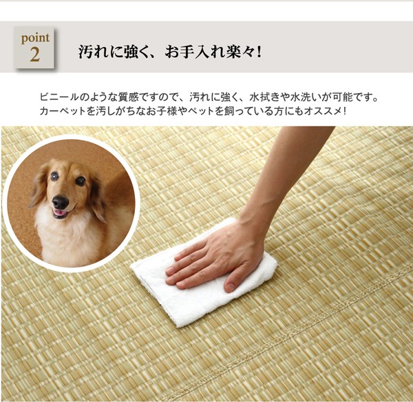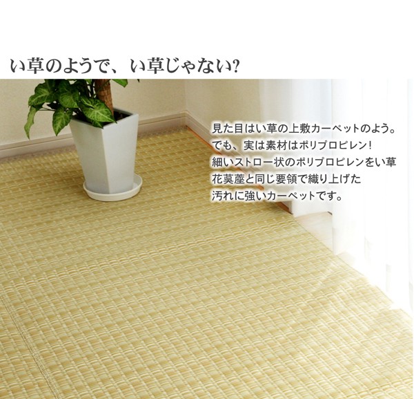 | ■ポリプロピレン素材を細いパイプ状にして織り込んだ敷物で、強度が高くしっかりとしています。汚れても水洗いができるので、いつでも清潔にお使いいただけます。お子様の部屋に、アウトドアに、ペットのいるご家庭に最適な万能カーペットです。※こちらの商品は二方にヘリを付けています。 ※写真は表記サイズと異なる場合がございます。 | |