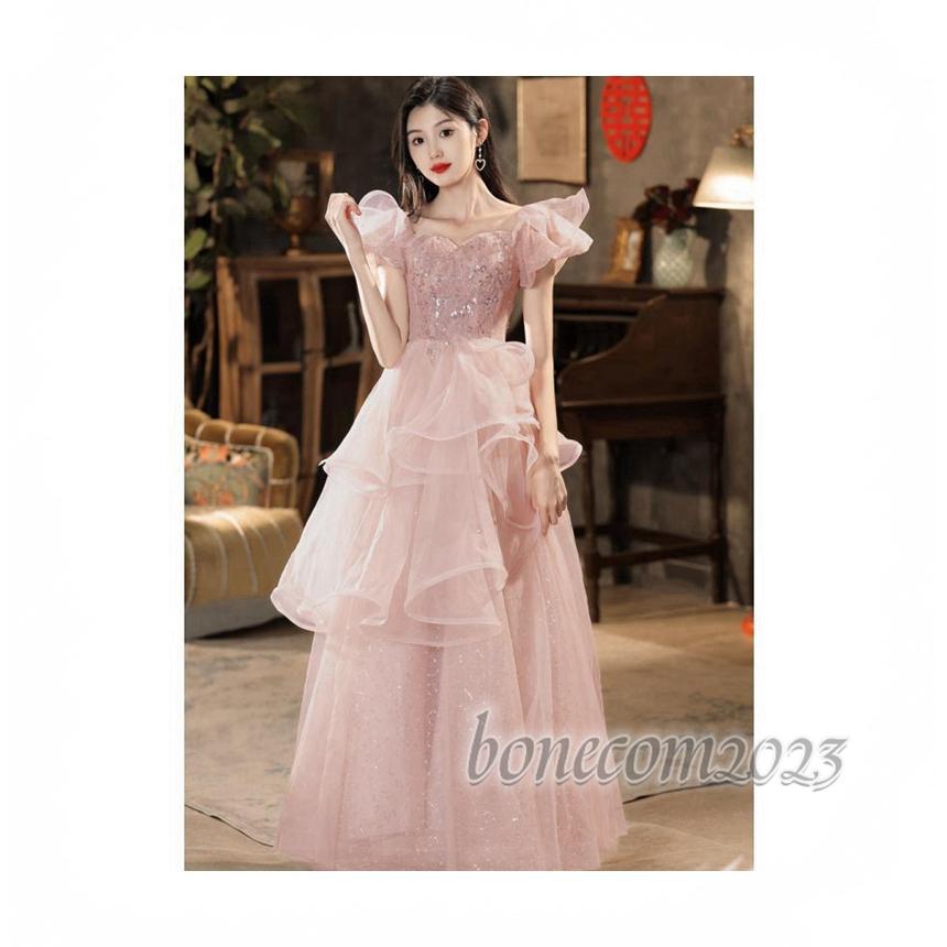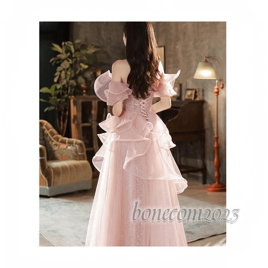 パーティードレス オフショルダー 可愛い 結婚式 成人式 パーティードレス エレガント エンパイア 誕生日 花嫁ロングドレス 演奏会 挙式