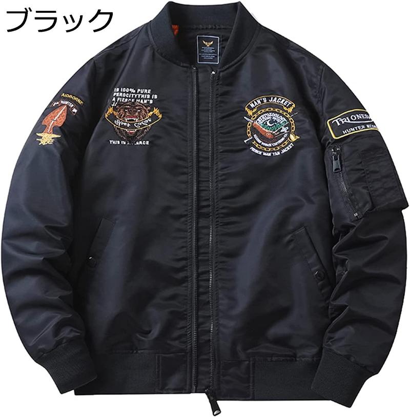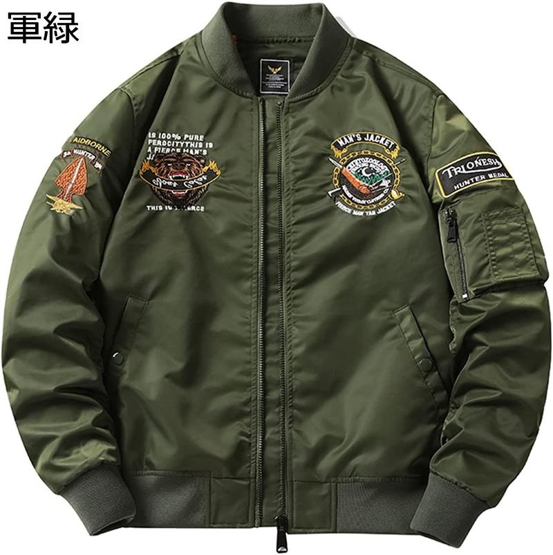 フライジャケット メンズ MA-1 フライトジャケット アメカジ ヒグマ刺繍 ワッペン ジップアップ ストリート ブルゾン アウター