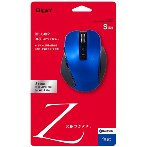 | 握り心地を追求した「Z」シリーズのSサイズ、無線(Bluetooth通信)。BlueLEDセンサー搭載 握り心地を追求したフォルム。 ・手の形に沿うやや厚みのあるフォルム。・親指、薬指、小指が自然にマウスを掴める形状を追求。 読取り解像度(ポインタースピード)は切替ボタンを押す度に800→1200→1600dpiと変化します。 インターネット閲覧に便利な『進む』『戻る』ボタン搭載。※macには非対応です。※「進む」「戻る」の割当てコマンドは変更できません。 |
