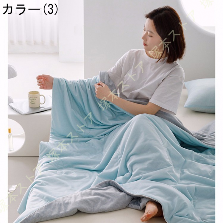 【オールシーズン】★『春』薄い掛け布団と組み合わせてのご使用がおすすめ。気温によってはこて1枚で快適です。★『夏』エアコンと併用しこれ1枚で寝冷え防止に。軽い掛け心地でべたつかずにサラッと快適。★『秋』日々寒くなっていく季節にも重宝します。これ1枚または組み合わせてご使用ください。 【通気性・放湿性】通気性と吸放湿性優れて、洗濯しても早く乾きます。さらに速乾性により、梅雨の季節など、洗濯物の乾きにくい時期にもいつも清潔!暖房や室温を適温にしてない時使れば、暑い夏にひんやり心地いい接触冷感素材、ちょっと冷たい感じがありますので、特に夏用でお勧めます。"}