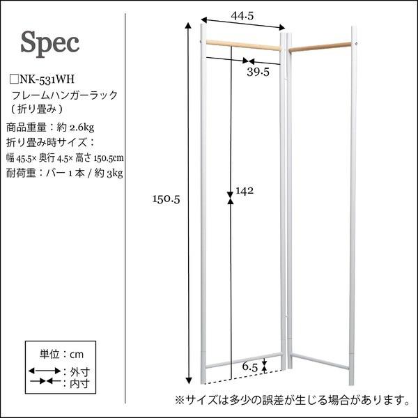 【商品名】 【3個セット】 フレームハンガーラック(ホワイト/白) 幅44.5cm 折りたたみパイプハンガー/スチール/天然木/スリム/軽量/アイアン/業務用/NK-531 【ジャンル・特徴】 折りたたみ ハンガーラック 木製ラック 衣類収納ラック コートラック ハンガー スリムラック 北欧風ラック ポールラック 衣類ラック 衣類収納 はんがーらっく 寝室 衣裳部屋 りびんぐ 玄関 什器 ディスプレイ [ NK-531WH-3 ]"}