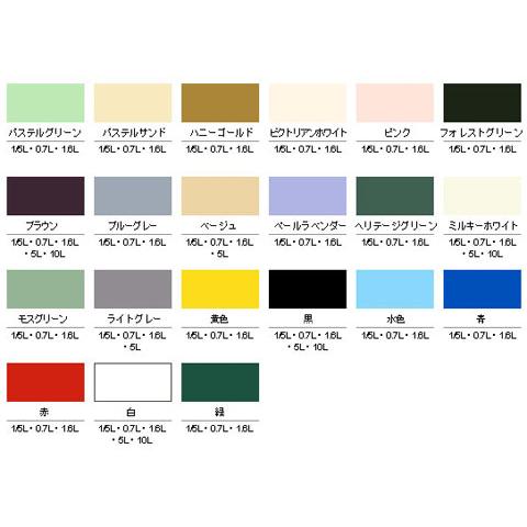 特徴1回塗り ソフトなツヤ フッ素樹脂配合 水性シリコンアクリル樹脂塗料汚れにくく、耐久性にすぐれた高性能塗料です。白系塗料には自動車用にも使われる高性能二酸化チタンを使用しています。無臭タイプ、1回塗りで仕上がります。サビドメ剤、防カビ剤配合で、サビやカビの発生を防ぎます。厚塗りしてもタレにくい塗料です。用途屋内外の木部や家具。鉄柵、看板などの鉄部、鉄製品。コンクリート、ブロック、各種サイディングなどの外壁や塀。浴室、台所、居間などのしっくい、モルタル、コンクリート壁、板壁。発泡スチロール、アクリル、硬質塩ビのプラスチック面。※絶えず水のかかる箇所、床面には適しません。仕様容量:5L色:黒乾燥時間:夏期/冬期 1時間/3時間薄め方:塗りにくい時、水で(5%以内)薄めます。標準塗り面積(1回塗り):タタミ21〜28枚分特許商品 #2628447 無鉛塗料※色見本はPC環境により実際の色と異なる事があります。こちらの商品は取寄せ商品のためお届けに1週間前後かかります。ご注文後のキャンセル、返品、交換ができません。ご了承ください。いろいろなところに塗れる万能型塗料