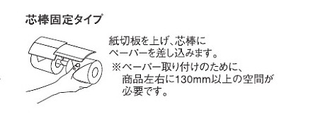 芯棒固定タイプ寸法:290×110×78.5 ワンハッドカット機能付き 本体・紙切板:亜鉛ダイキャスト(クロムめっき仕上げ)※ペーパー取付の為に、製品左右に130mm以上の空間が必要です。