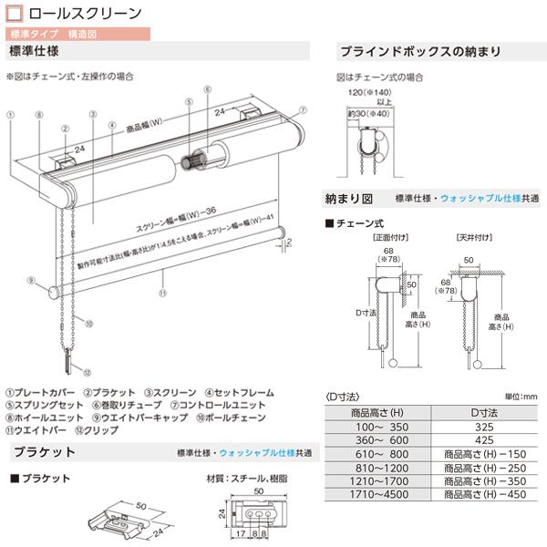 ニチベイ ロールスクリーン ポポラファン 標準タイプ 標準仕様 チェーン式 幅505〜800mm 高さ810〜1200mm