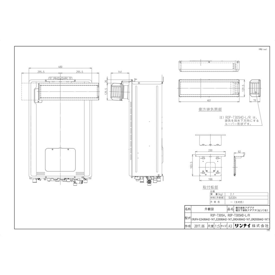 【ROP-T305H】 《KJK》 リンナイ 側方排気アダプタ ωα0