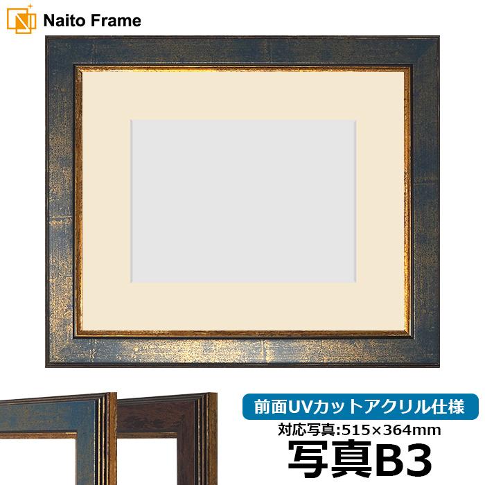 額縁 フレーム 写真用額縁 9650/ブルー B3(515×364mm)専用 前面UVカットアクリル仕様 マット付き
