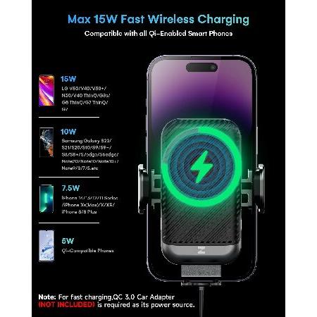[冷却バージョン] ZeeHoo 15W 高速ワイヤレスカーチャージャー 自動締め付けカーマウント フロントガラスダッシュエアベントホルダー 冷却充電 iPhone 14 13