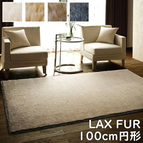 ラグマット スミノエ 床暖対応 フェイクファーラグ ラックスファー 100cm円形 円形ラグ 防ダニ アレルブロック 防炎 毛足22mm シャギー