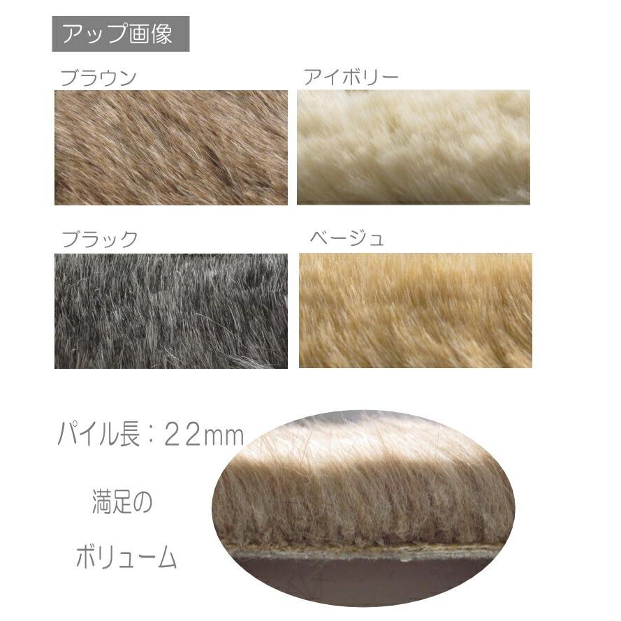 ●信頼のスミノエの高級感あふれるフェイクファーラグ●防ダニ加工がついて安心カーペット!●毛足22mmのボリューム感のあるやさしいフェイクファーラグです●床暖房対応、ホットカーペット対応●選べる4色:ブラウン、アイボリー、ブラック、ベージュ○組成:アクリル100%○パイル長:22mm○機能:防ダニ、アレルブロック、トリプルフレッシュ(消臭)、防炎、ホットカバー対応、床暖房対応○日本製