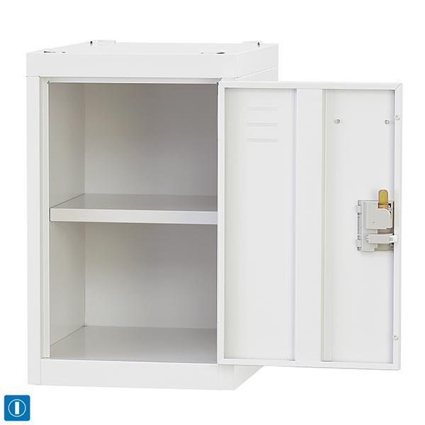 【特徴】■ スタンダードなロッカーで非常に使い勝手のよい仕様です。■ 国内工場(国産・日本製)で生産しておりますので、安心してお使いいただけます。【外寸】W455×D400×H500 (mm)【内寸】W392×D355×H棚上195/棚下190 (mm)【材質】スチール【質量】9.1kg【カラー】ホワイトグレー【付属品】固定棚、滑り止め【備考】