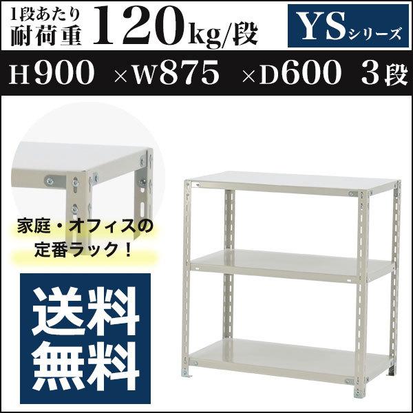 スチールラック スチール棚 ボルト固定 軽量棚 耐荷重120kg/段 高さ900 横幅875 奥行600 単体 3段 YSシリーズ