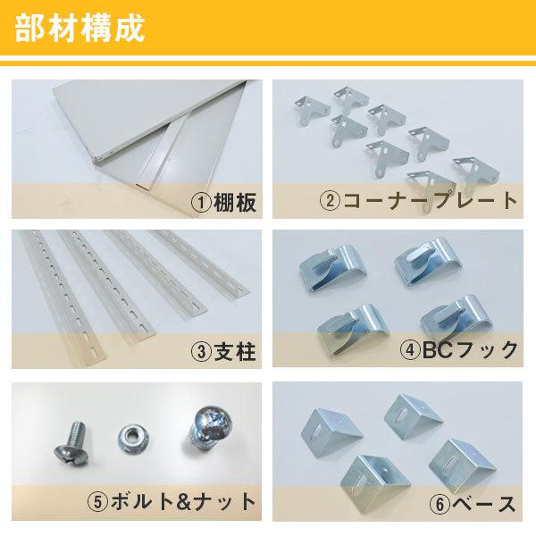 業務用 軽量スチールラック / スチール棚セミボルトレスラックサイズ:高さ90cm×横幅87.5cm×奥行60cm耐荷重:1段あたり120kg(最大全体で600kg)※BCフックでの使用の場合、耐荷重は100kg/段となります。カラー:ホワイトグレー(白)商品重量:17.32kg柱の太さ:40mm角のL型構造:アングル棚中段:50mm(5cm)ピッチで上下調節内容物・スチールラック本体(部材ごとのお届け)業務用収納棚。オフィス、店舗、ガレージ、倉庫、工場と場所を選ばず、在庫管理や工具、ファイルの保管等様々な用途で利用されています。【注意事項】※お客様組み立て商品です。※北海道・沖縄・離島・一部地域につきまして、別途送料が必要となります。検索ワード: スチールラック 軽量棚 120kg w90 h90 d60 単体 本体品番:YS-B113S-W-03