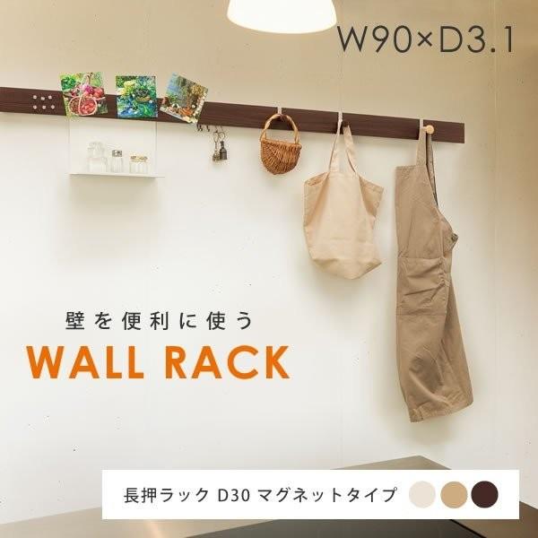 ウォールシェルフ 壁 長押ラックD30 マグネットタイプ 幅90×奥行3.1cm 長押 壁面収納 洋服掛け ハンガーラック ウォールラック 玄関