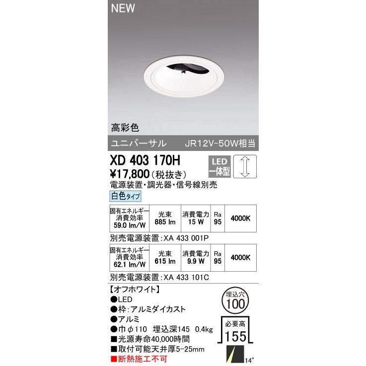 オーデリック ダウンライト 【XD 403 170H】【XD403170H】