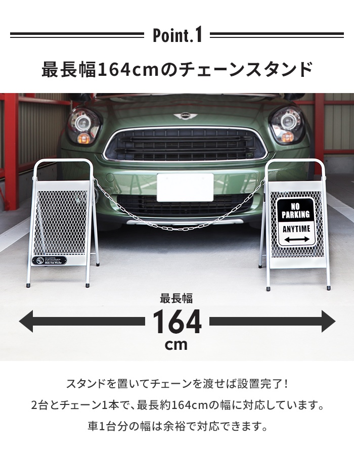 チェーンスタンド 駐車場 セット 立ち入り禁止 スタンド 2個 工事不要 看板 フェンス 仕切り エクステリア シンプル おしゃれ