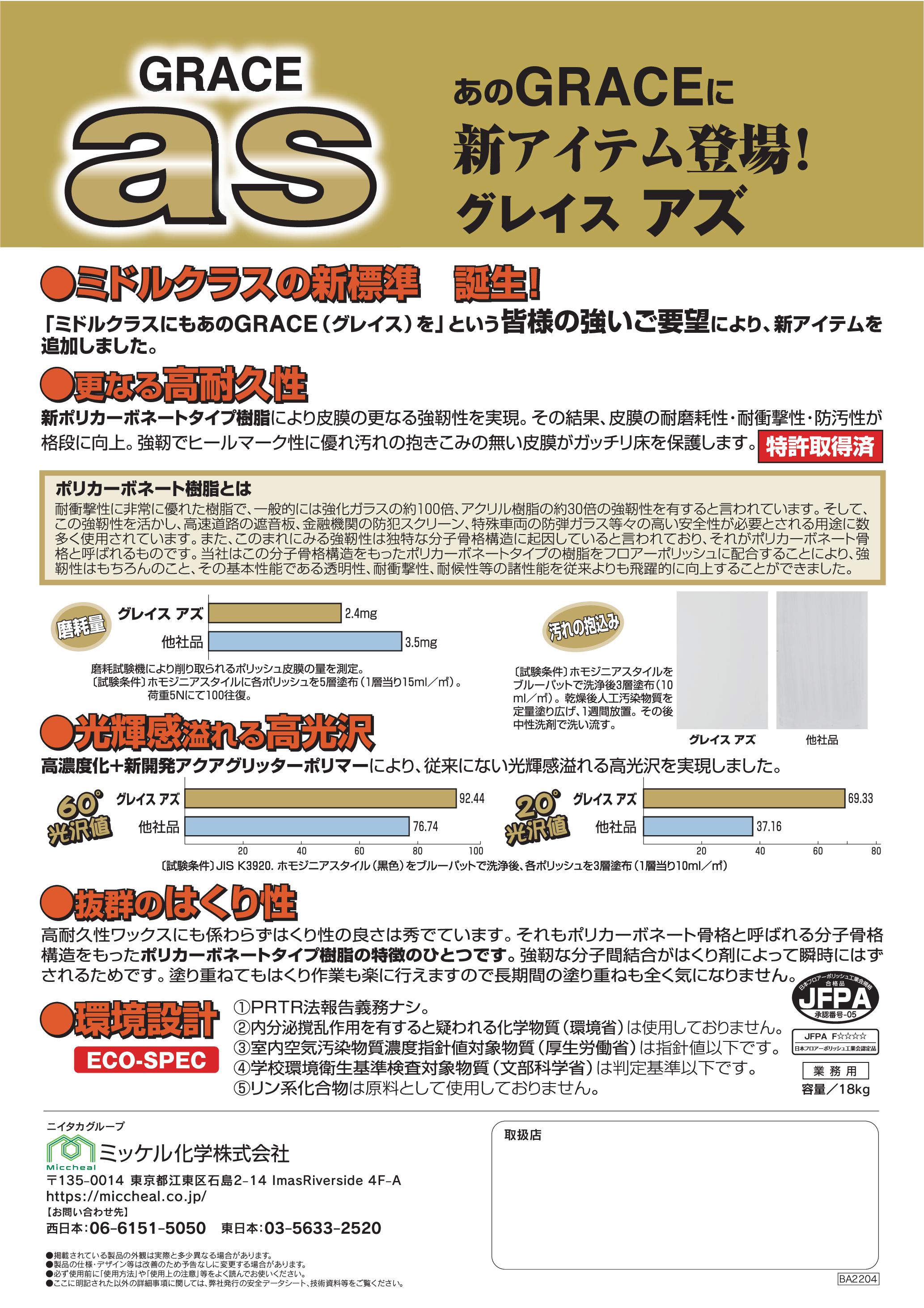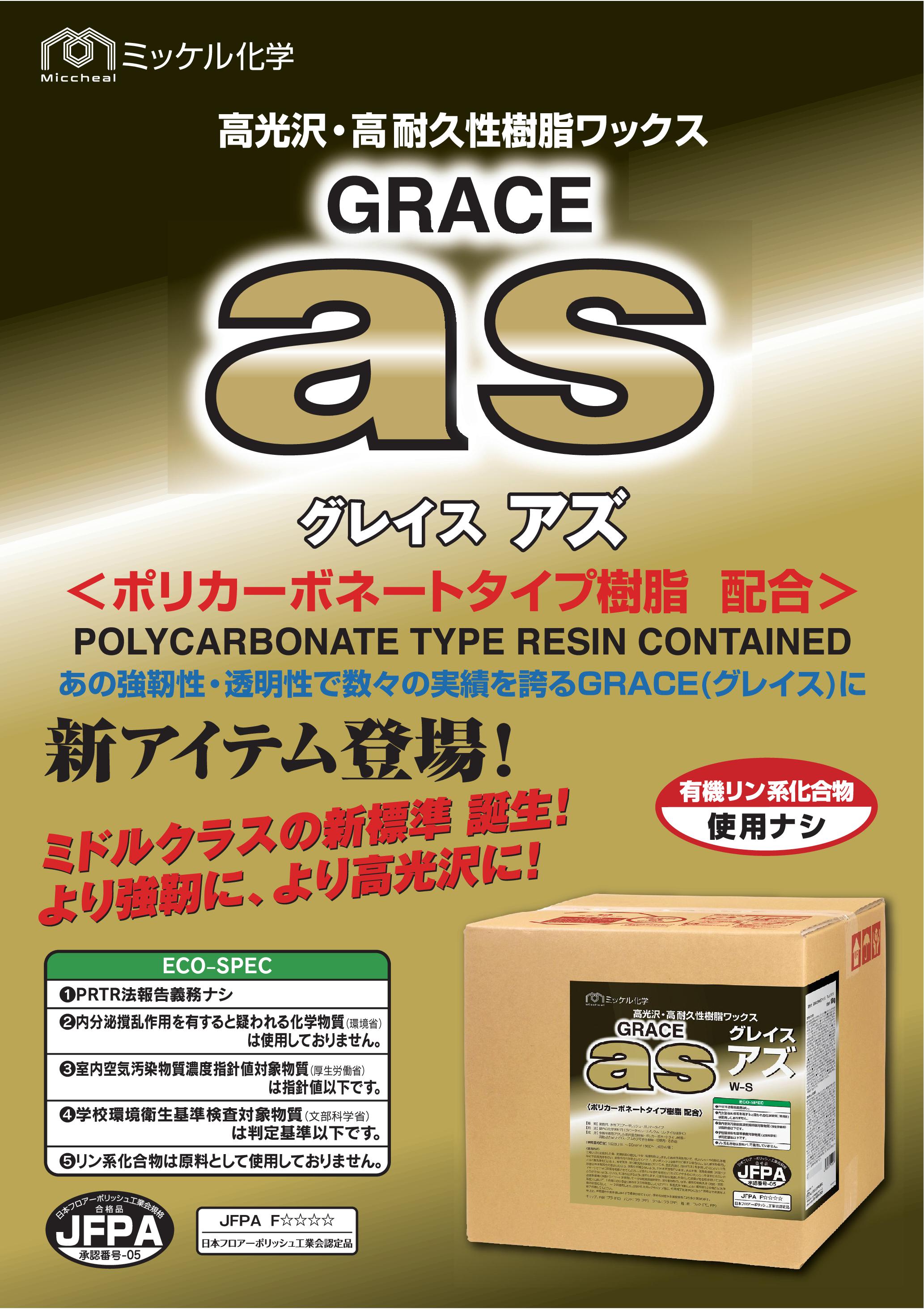 (事業者宛 送料無料)ミッケル化学 グレイスアズ(18kg) フロアワックス ポリカーボネート樹脂 超高光沢性ワックス 約18L