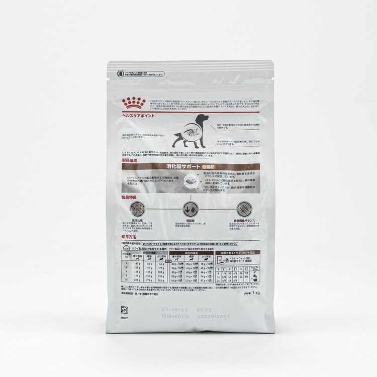 【商品説明】●消化吸収不良による下痢や高脂血症の犬のために犬用 消化器サポート 低脂肪は、消化吸収不良による下痢や高脂血症の犬に給与することを目的として、特別に調製された食事療法食です。この食事は、脂肪や食物繊維の含有量を調整し、消化性の高い原材料を使用しています。●商品特長・高消化性消化管の健康維持に配慮して高消化性に設計。さらにプレバイオティクスを含む複数の食物繊維をバランスよく配合。・低脂肪*脂肪制限が必要な犬のために、脂肪含有量を調整。*「犬用 消化器サポート」と比較し、約65%減。・食物繊維バランス低脂肪でも必要なエネルギーを摂取できるように、食物繊維の含有量を調整。●使用方法獣医師指導のもと、食事療法食としてお与え下さい。●メーカー名ロイヤルカナン●賞味期限仕入れ元の規約により出荷時点で半年以上の商品のみ出荷致します。●内容量1kg●保存方法別途パッケージに記載●生産国・加工国韓国