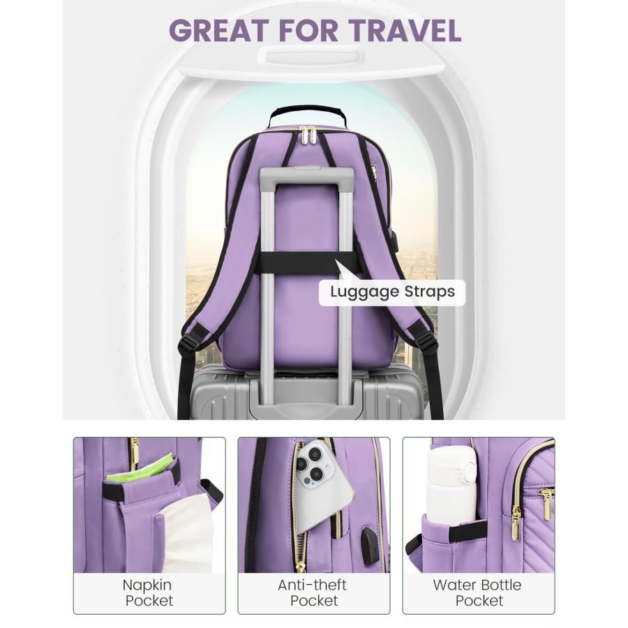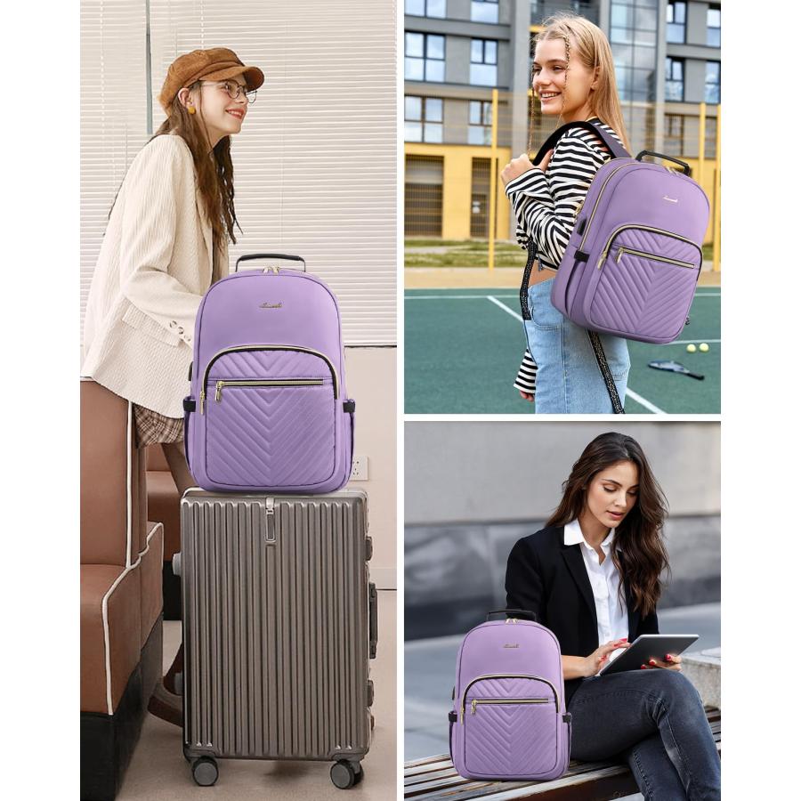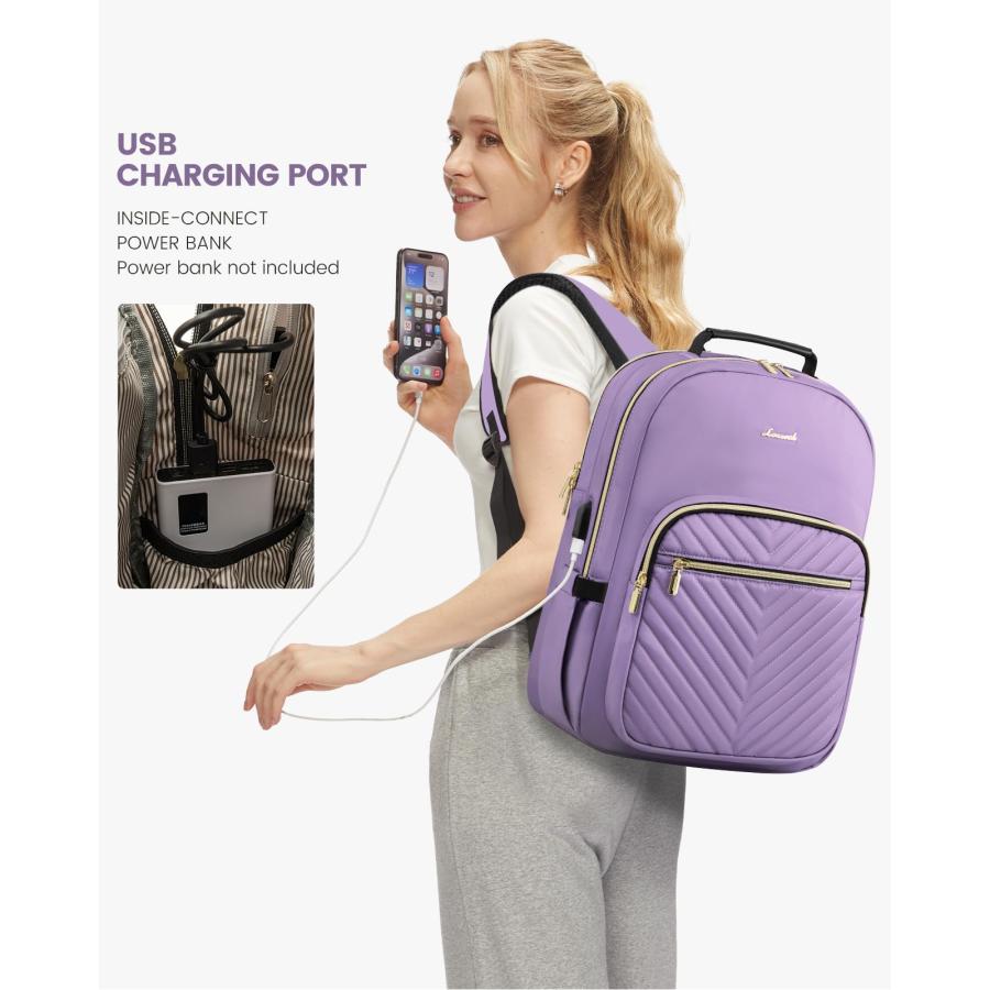 LOVEVOOK Laptop Backpack Purse for Women, Work Business Travel Computer Bags, Nurse Backpack for Womens, Quilted Casual Daypack with USB Port, Fit 15.
