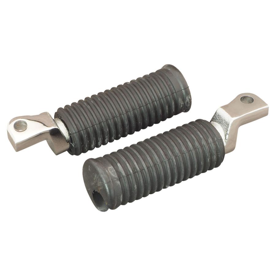 ・メーカー:NEO FACTORY(ネオファクトリー)・メーカー品番:026927・OEM:51327-08・適合車種:オス型のフットペグを採用しているほとんどのハーレー・色:スチール部分:クローム・サイズ:全長:約125mm(マウント部含む)ラバー部分:約95mm直径:約25mm・内容物:フットペグ×2本