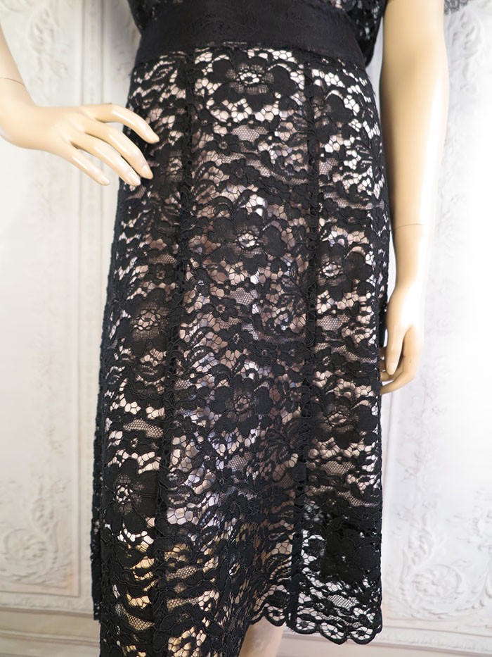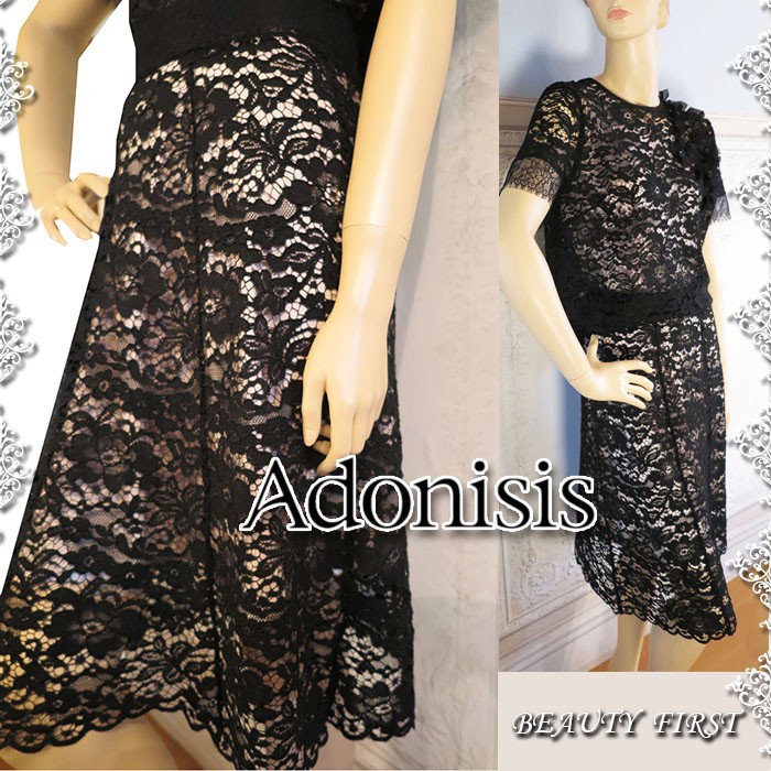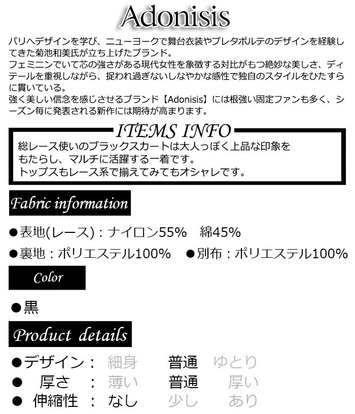 [参考小売価格20350円→12210円 40%OFF] Adonisis アドニシス 総レースブラックスカート レディース スカート ボトムス 膝下丈 レース デイリー